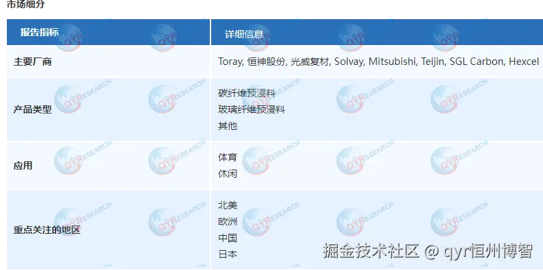 《2025年全球及中国体育和休闲预浸料企业出海开展业务规划及策略研究报告》报告中,QYResearch研究全球与中国市场体育和休闲预浸料的产能、产量、销量、销售额、价格及未来趋势。重点分析全球与中国市场的主要厂商产品特点、产品规格、价格、销量、销售收入及全球和中国市场主要生产商的市场份额。历史数据为2020至2024年,预测数据为2025至2031年。