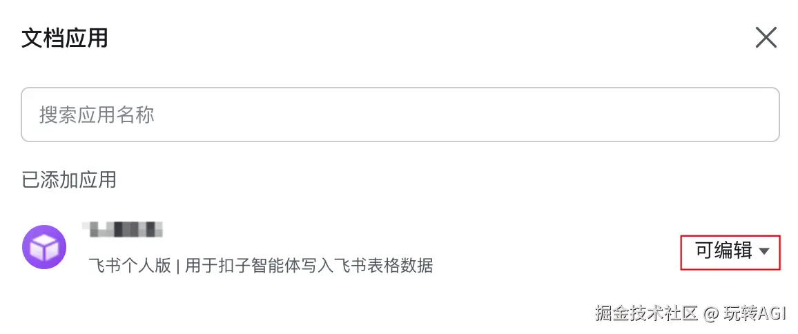 - 单击设置图标,选择更多 > 添加文档应用,然后选择上一步中已发布的飞书应用。