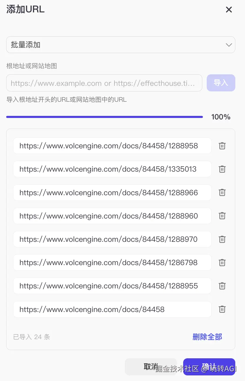 - 选择自动采集,然后选择批量添加方式,输入帮助中心的地址,再单击导入。