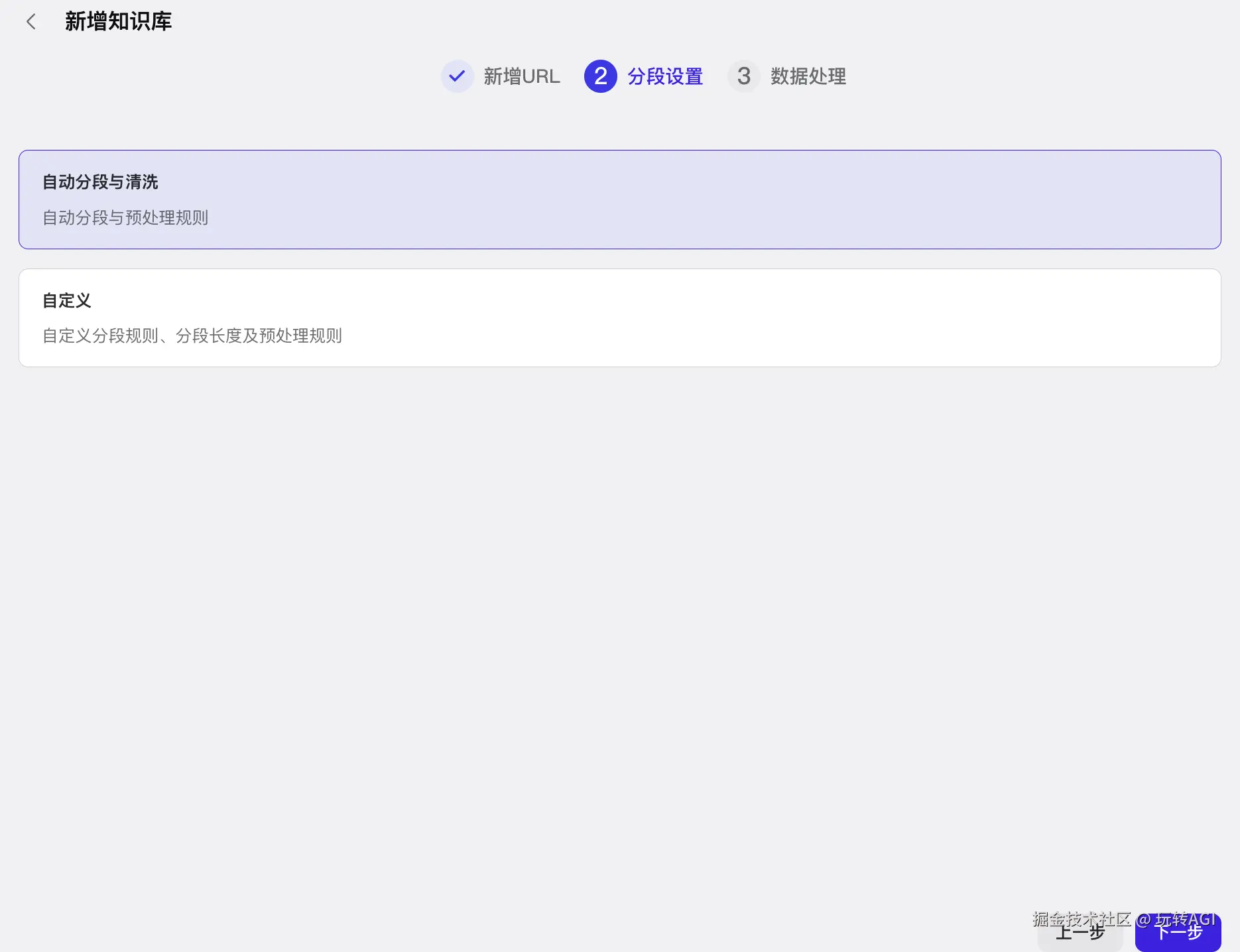 - 分段方式选择自动分段与清洗,然后单击下一步。