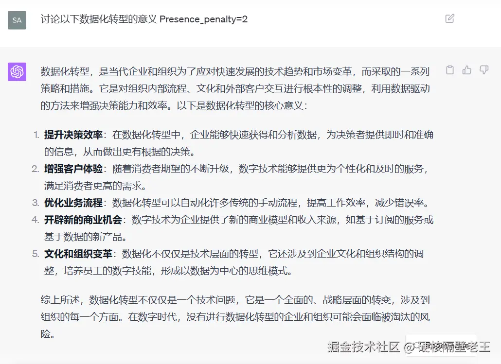 理解这些参数可以帮助你更有效地定制和使用ChatGPT以满足各种需求。