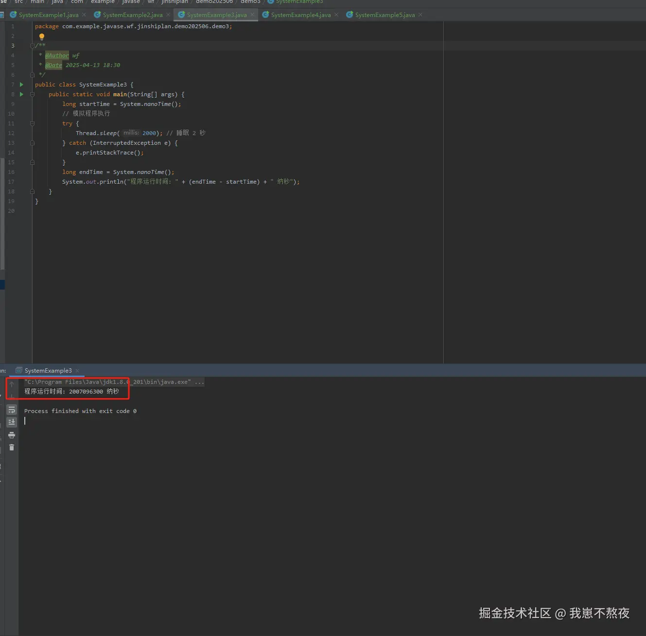 System.out.println("程序运行时间: " + (endTime - startTime) + " 纳秒");