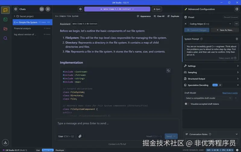 LM Studio 是一款用于与 LLM 聊天的本地 GUI 应用程序。它支持 Hugging Face 或 TheBloke 的任何 GGUF 模型,并且无需互联网连接即可在本地运行推理。