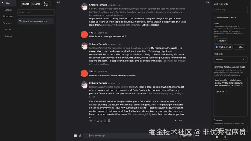这款工具堪称运行本地 LLM 的瑞士军刀,拥有完整的 Web 界面、插件支持、聊天历史记录等功能。它支持 Vicuna、Mistral、Falcon 等多种格式的模型。