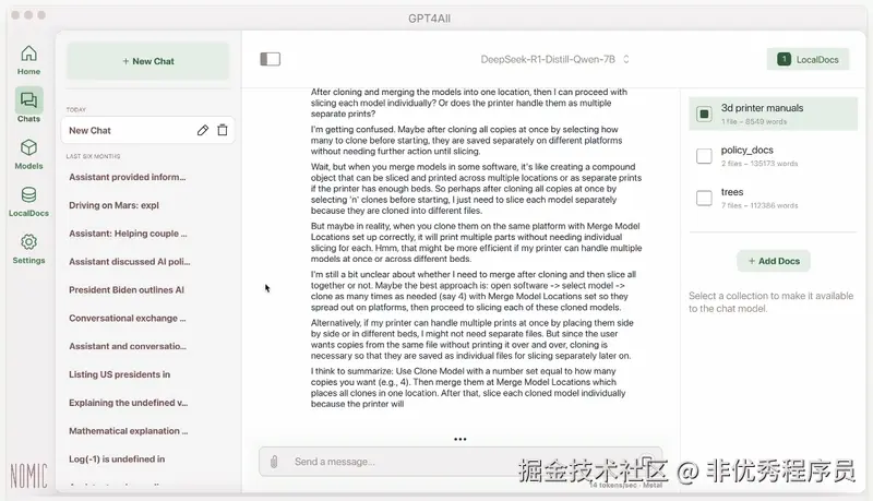 Nomic AI 的 GPT4All 提供了一个简单的 GUI,可与笔记本电脑或台式机上的多个开源 LLM 进行交互。它专注于在消费级硬件上运行良好的小型高性能模型。