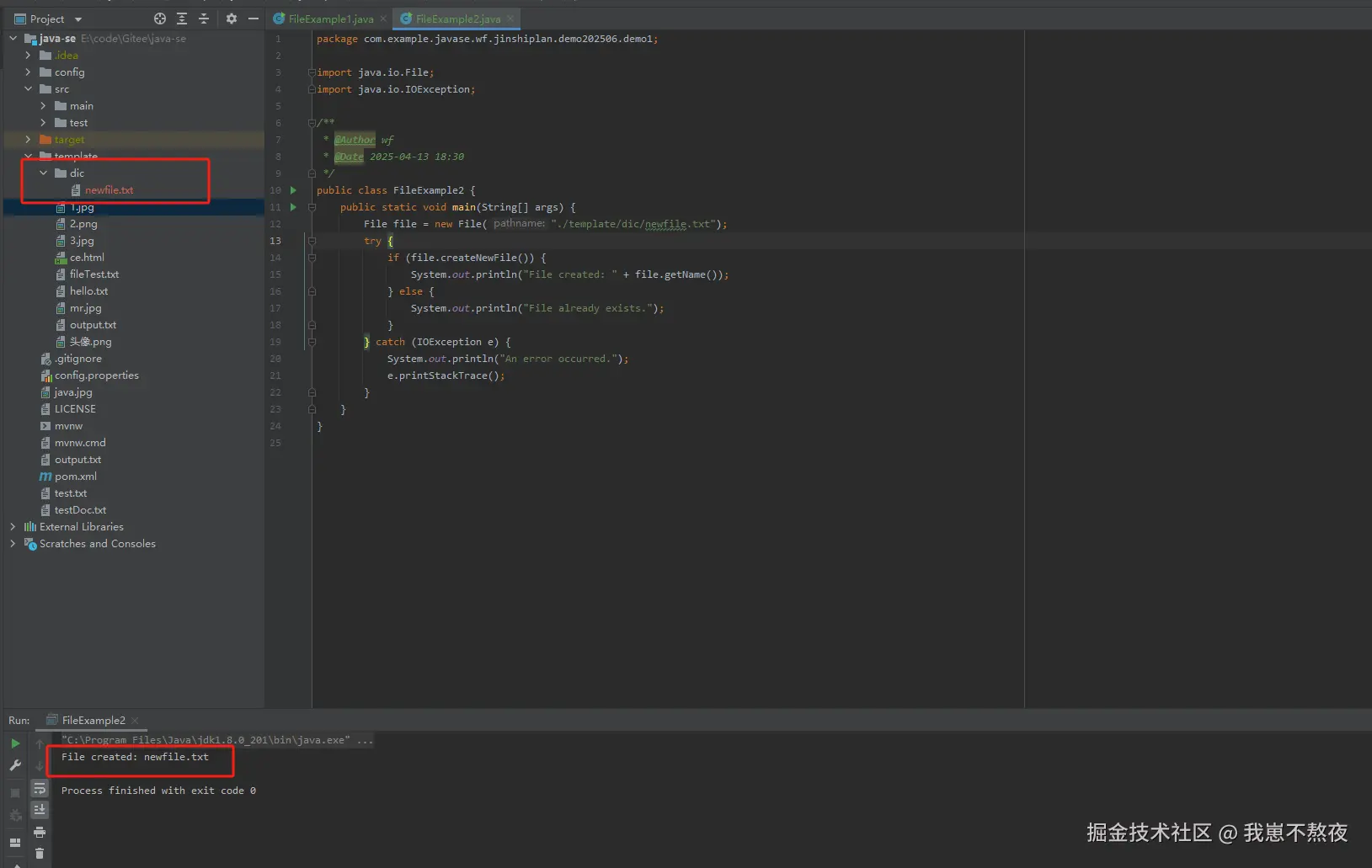 这行代码通过 File 类的构造器创建了一个 File 对象,表示一个路径为 ./template/dic/testfile.txt 的文件。注意,这个路径是相对路径,即相对于程序当前运行目录的位置。在文件操作中,路径可以是相对的或绝对的。