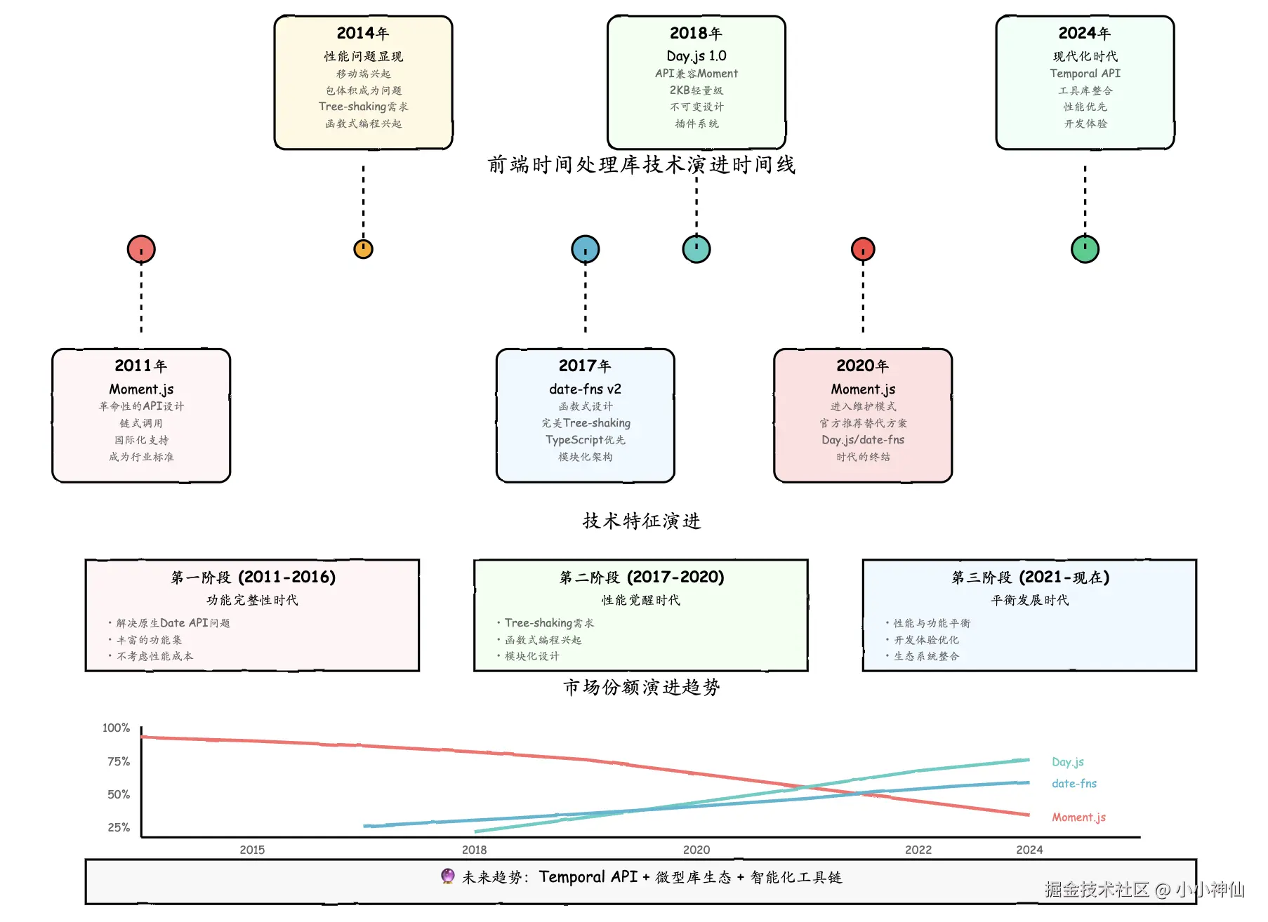 前端时间处理库的发展反映了整个前端生态的演进趋势: