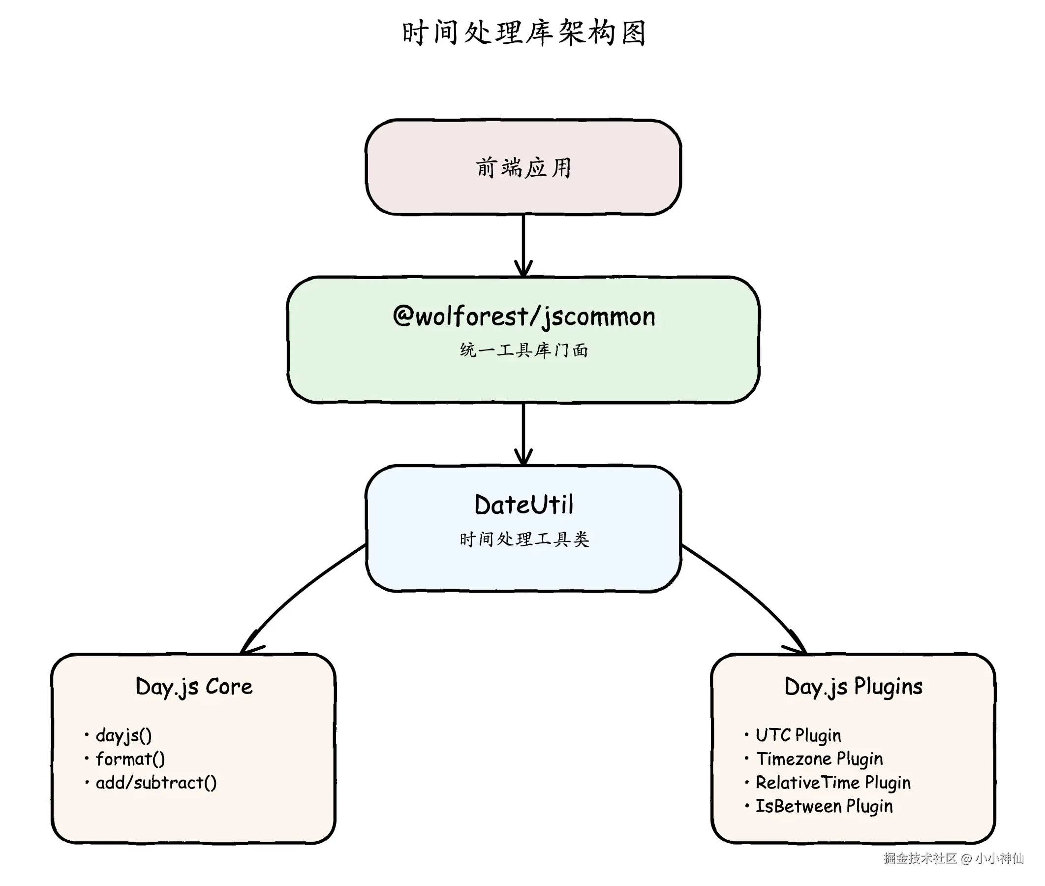 在现代前端开发中,时间处理是一个高频且复杂的需求场景。原生 Date API 的设计缺陷和功能局限性,促使社区发展出了多样化的解决方案。本文将深入分析三个主流时间处理库的技术特性,并结合 @wolforest/jscommon 的实际架构设计,探讨企业级工具库的最佳实践。