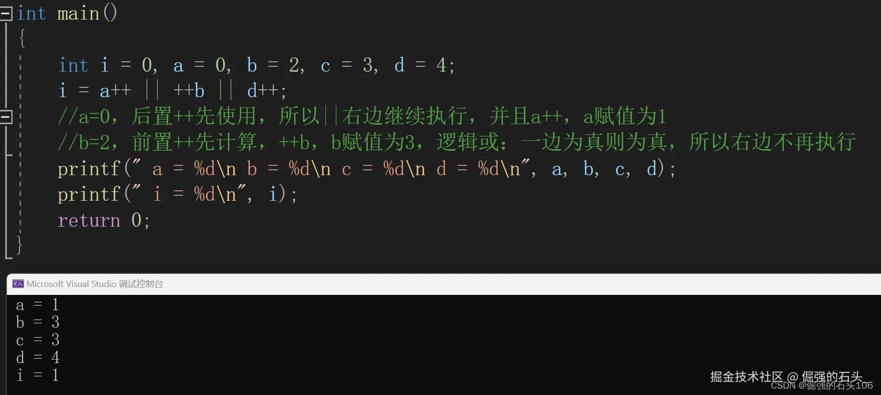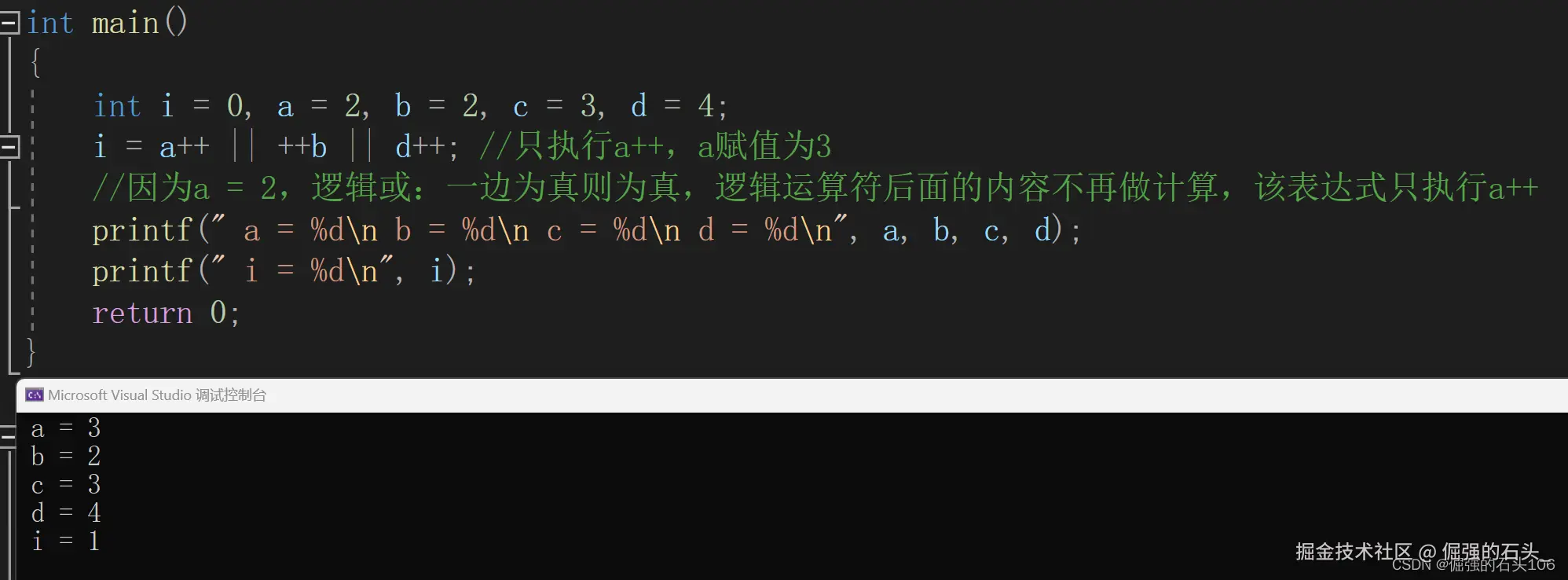 对于 || 操作符来说,左边操作数的结果是1的时候,右边操作数就不再执⾏ (左边操作数的结果是1的时候,右边不必判断也是真)
