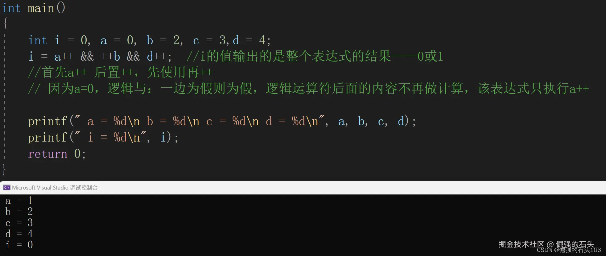 对于&&操作符来说,左边操作数的结果是0的时候,右边操作数就不再执⾏ (左边操作数的结果是0的时候,右边不必判断也是假)