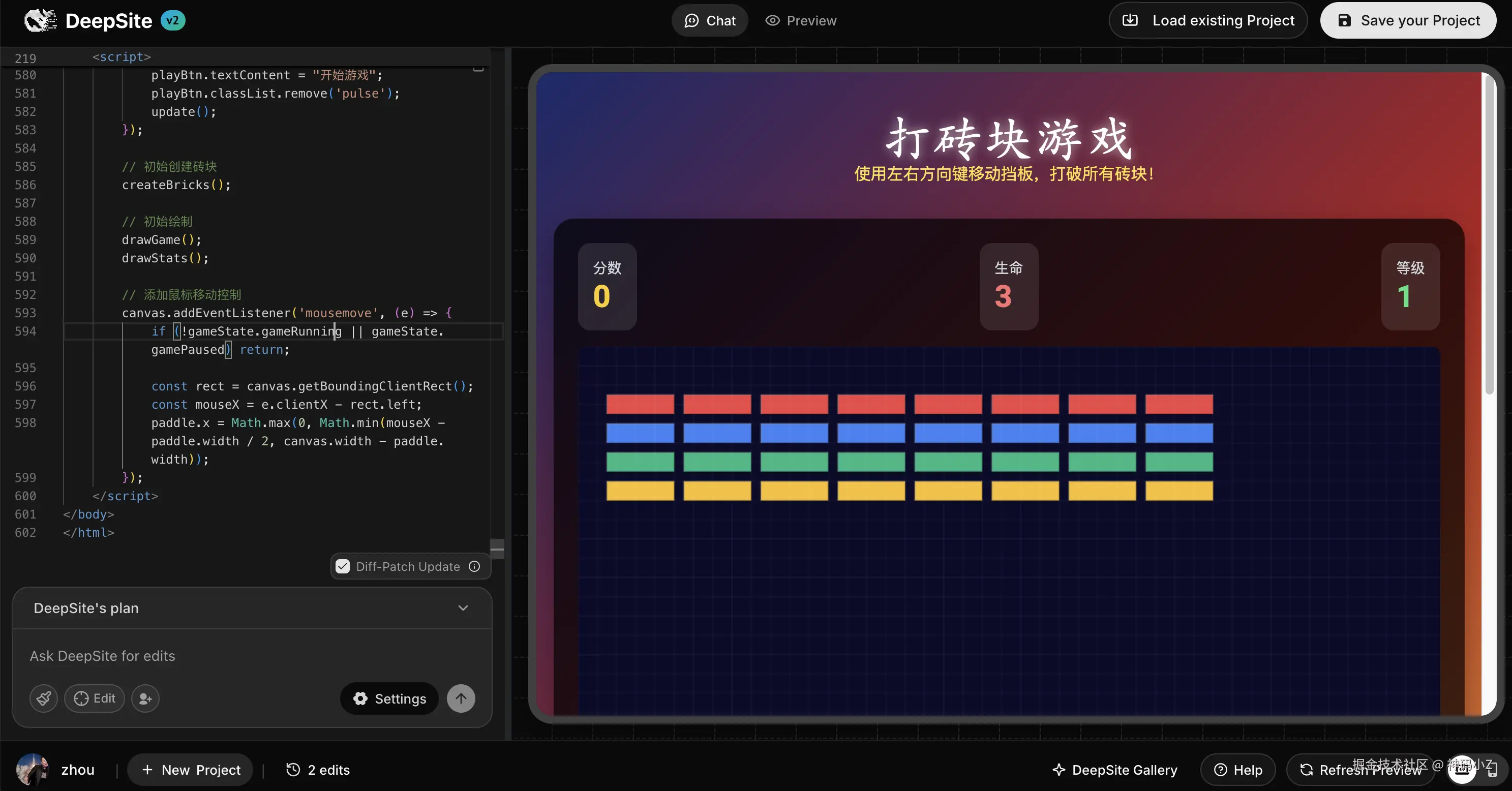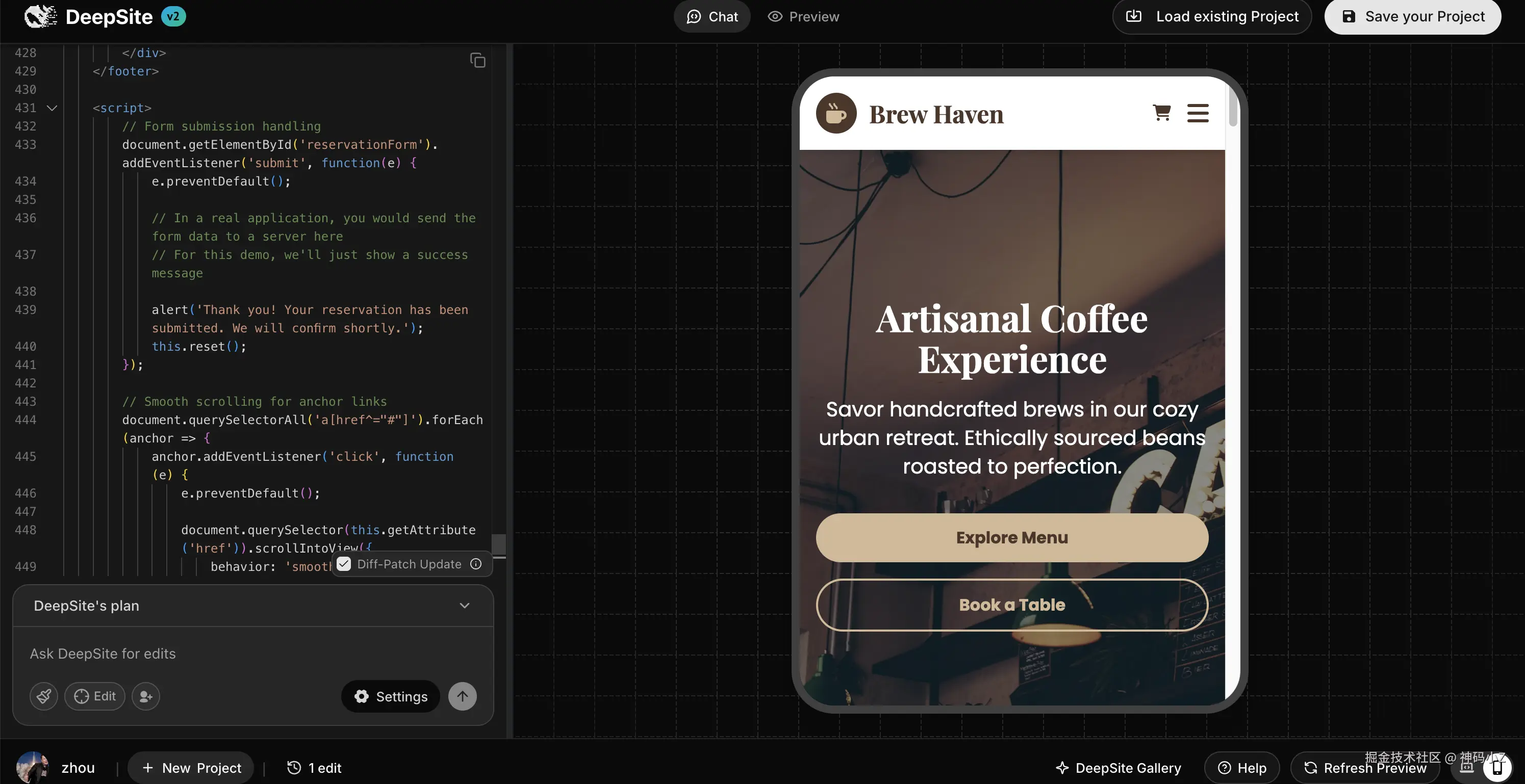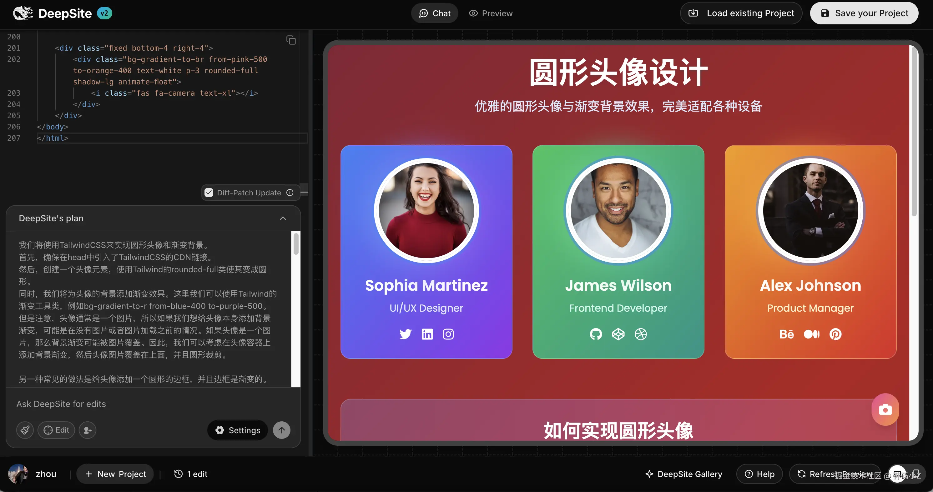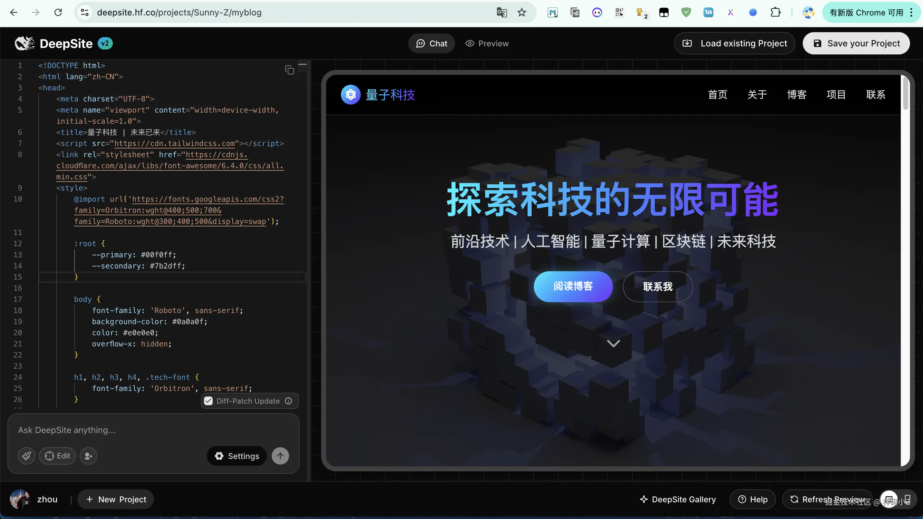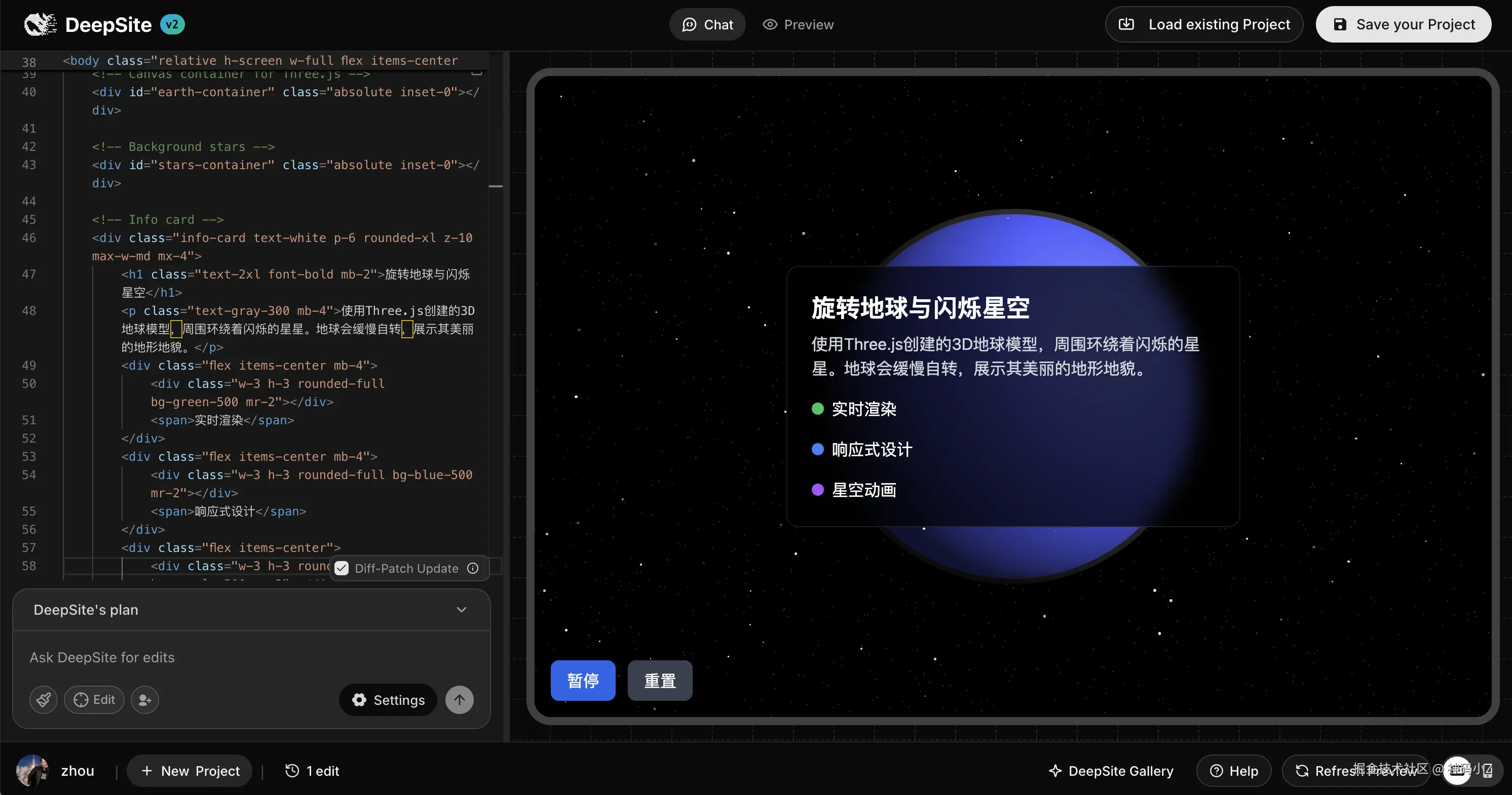 DeepSite V2采用了先进的Diff Patching技术,这意味着每次修改都是"小步快跑"——只更新需要改变的代码片段,既快速又精准,避免了整页重写的风险。