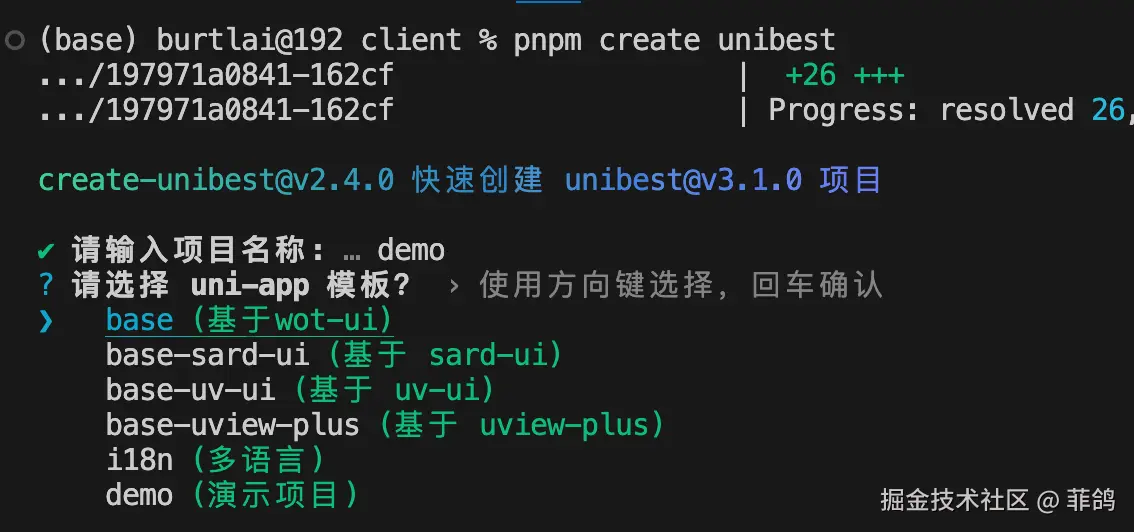 今天我又加上了其他几个分支,都是基于新的 main 开发的,主要是 ui 库的整理,方便用户直接生成不同 ui 库的基础模版,如下图。