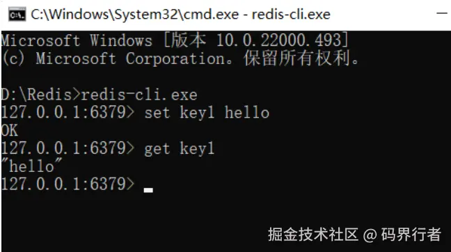我们使用redis-cli.exe命令来打开Redis客户端:(可以另外开一个cmd窗口)