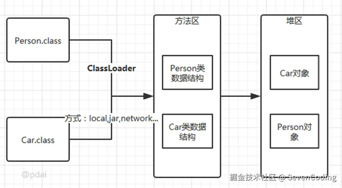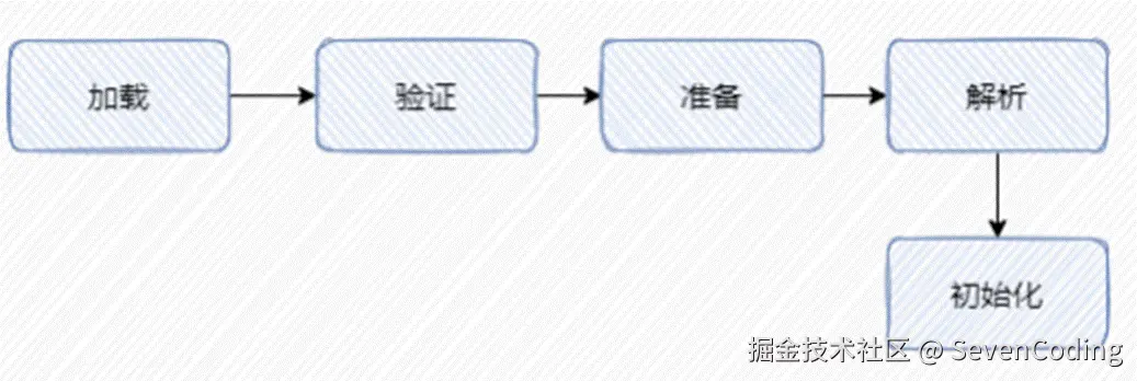 类加载指的是把类加载到 JVM 中。把二进制流存储到内存中,之后经过一番解析、处理转化成可用的 class 类