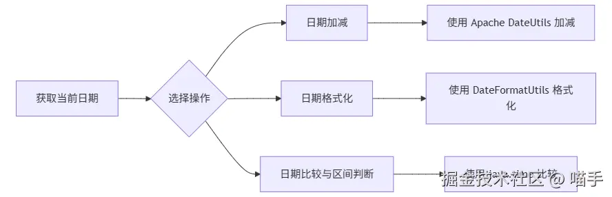 这个流程图展示了从获取当前日期到各种操作的路径。通过选择不同的操作,你可以轻松地使用相应的工具类来处理日期和时间。