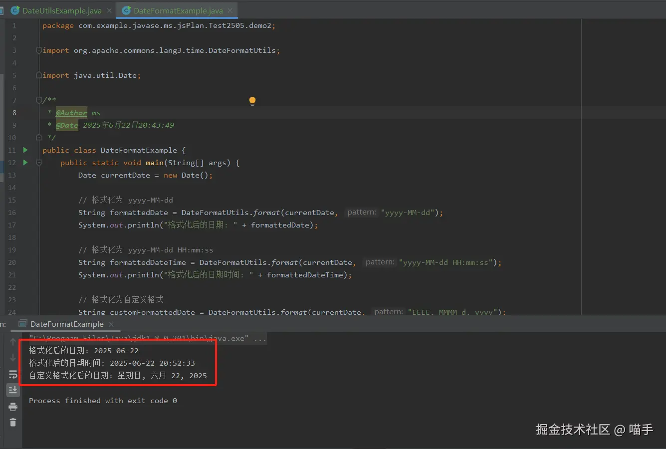 我们来看看如何使用 DateFormatUtils 来格式化日期: