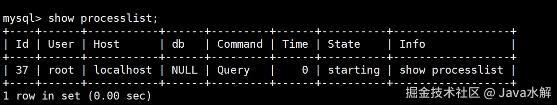 有的时候,可能会有多个用户访问我们的mysql,当我们输入下面的指令就可以知道当前有哪些用户连接到了我们的服务器,如果查出某个用户不是你正常登陆的,很有可能你的数据库被人入侵了。以后大家发现自己数据库比较慢时,可以用这个指令来查看数据库连接情况。