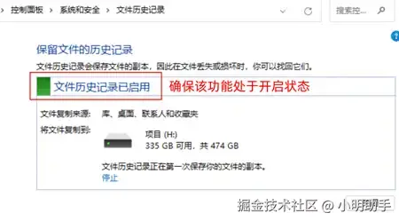 除了磁盘修复工具,用户还可以选择使用一个更为高效的系统自带工具进行SD卡数据恢复。内存卡数据删除了能恢复吗?直接选择使用“文件历史记录”功能可以帮助用户通过启用系统准备的备份文件实现数据恢复。具体操作如下: