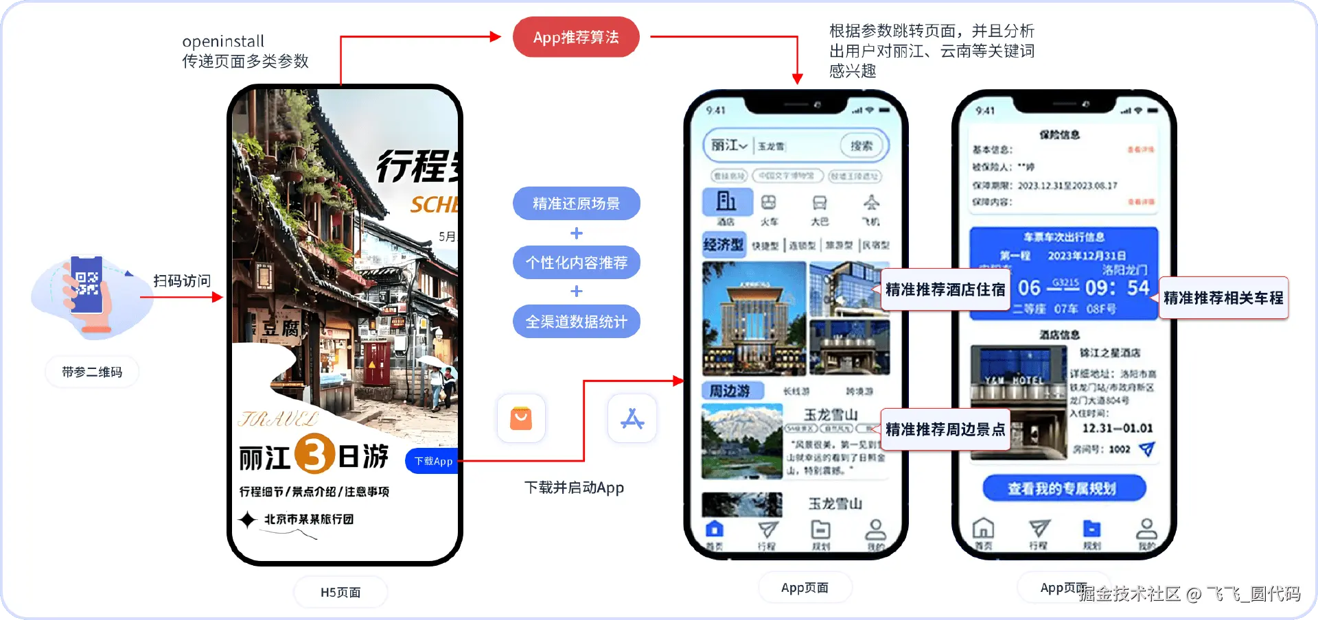(4)App在首次启动时,将携带的参数反哺精准推荐算法,可展示不同的内容推荐、引导进入不同的功能模块,提升用户体验和转化率。