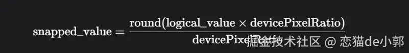 接着进行取整(对齐到物理像素网格), round() 函数(或 ceil / floor) 强制把这个带小数的物理像素值,对齐到了最近的整数物理像素网格上,这是我们就有了一个没有小数点的物理像素 83 :