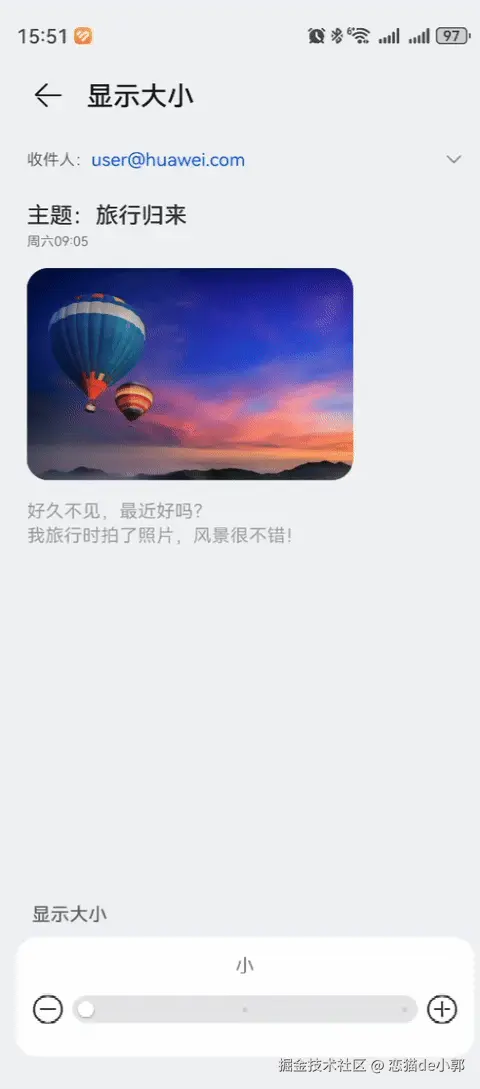 另外,比如华为上就有直接调整显示大小的设置,用户可以根据需要调整「屏幕像素密度」而不是单纯字体大小,通过微信 tabbar 的变化,也可以看到这种自定义显示缩放比例对 UI 带来的影响: