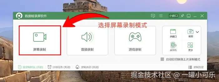 步骤1:打开数据 蛙录屏软件,在主界面选择适合的录制模式,今天我们会以 “屏幕录制” 为例。