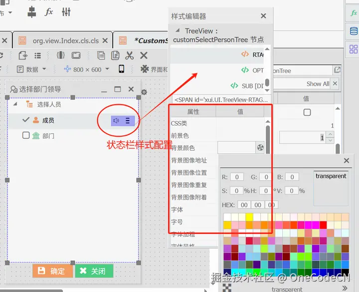 - 子组件配置:允许用户针对树形中任意子组件,如Root节点、工具栏样式、状态栏样式等等进行独立的CSS编辑。
