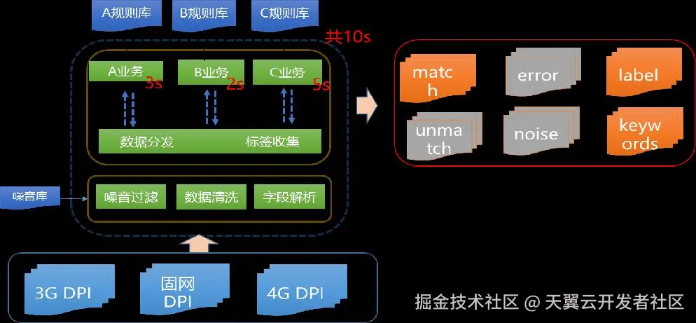 将规则库加载到主框架,与dpi中的HOST进行匹配,对该dpi记录进行数据处理与分发,如网站类型、平台名称、开始时间等