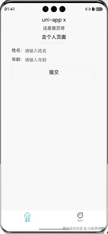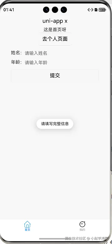 在首页(index 页面)添加一个简单表单,比如包含姓名、年龄输入框和提交按钮,填写信息后点击提交,模拟数据提交(实际开发可对接接口,这里先做基础演示)。