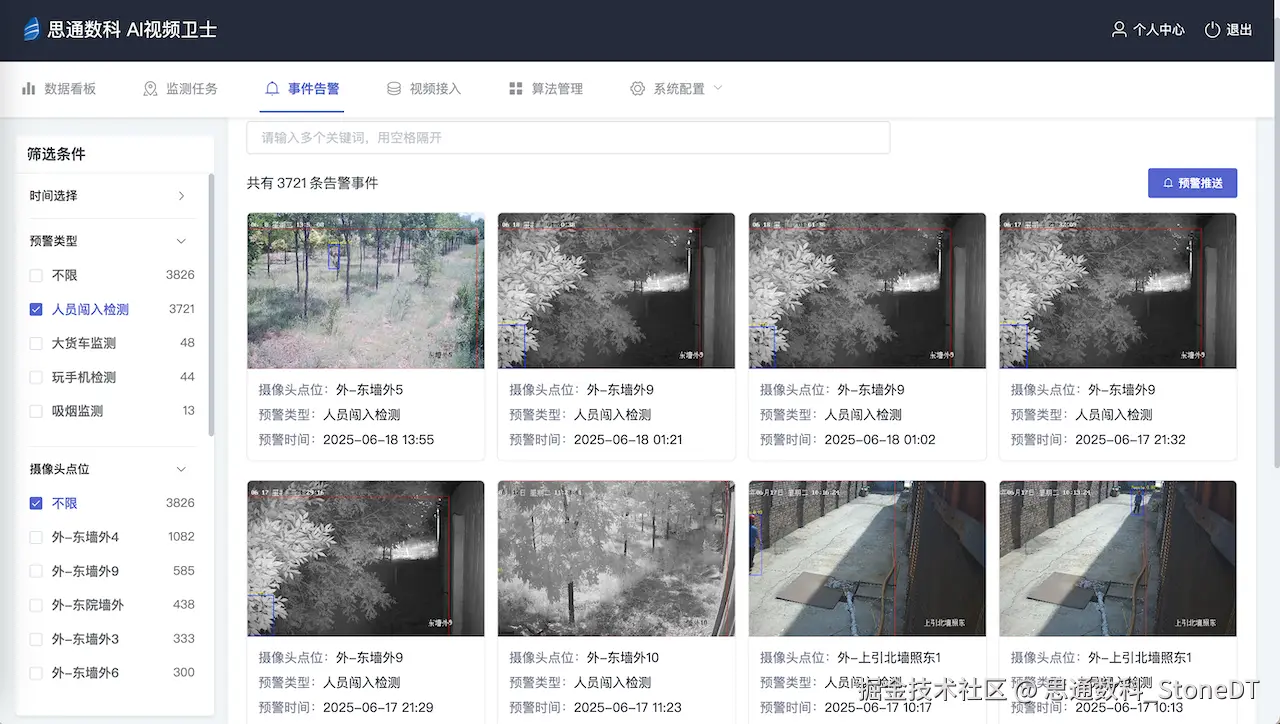 作为服务央企及公检法司的技术驱动型企业,思通数科落地的「AI反盗采监测系统」,以“看得清、盯得牢、可追溯”为核心,重构矿区监管逻辑: