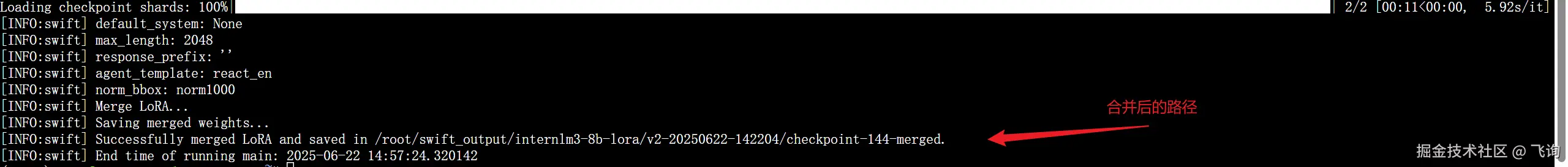 swift export --adapters /root/swift_output/internlm3-8b-lora/v2-20250622-142204/checkpoint-144 --merge_lora true