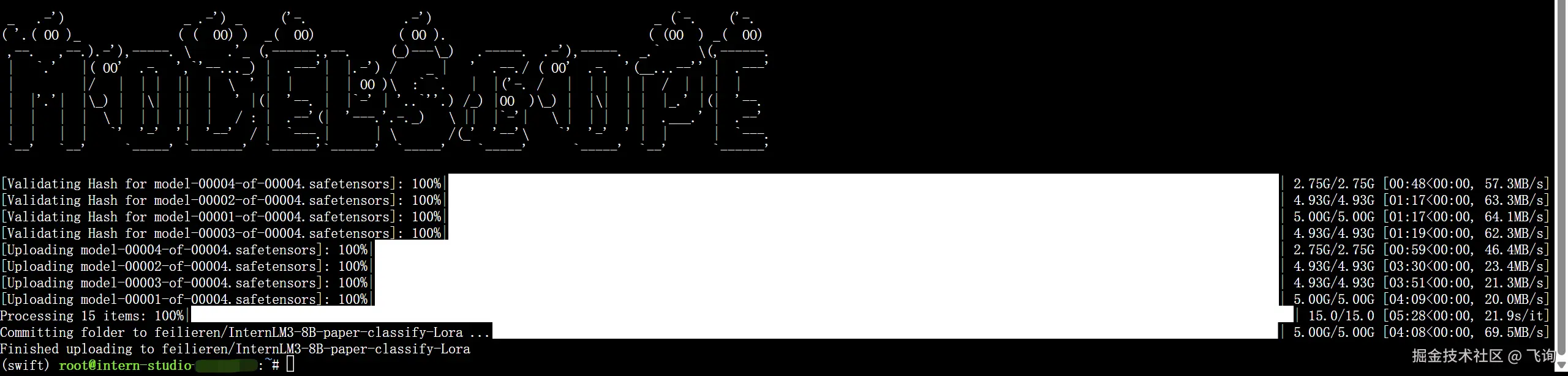 swift export --adapters /root/swift_output/internlm3-8b-lora/v5-20250622-155801/checkpoint-62 --merge_lora true