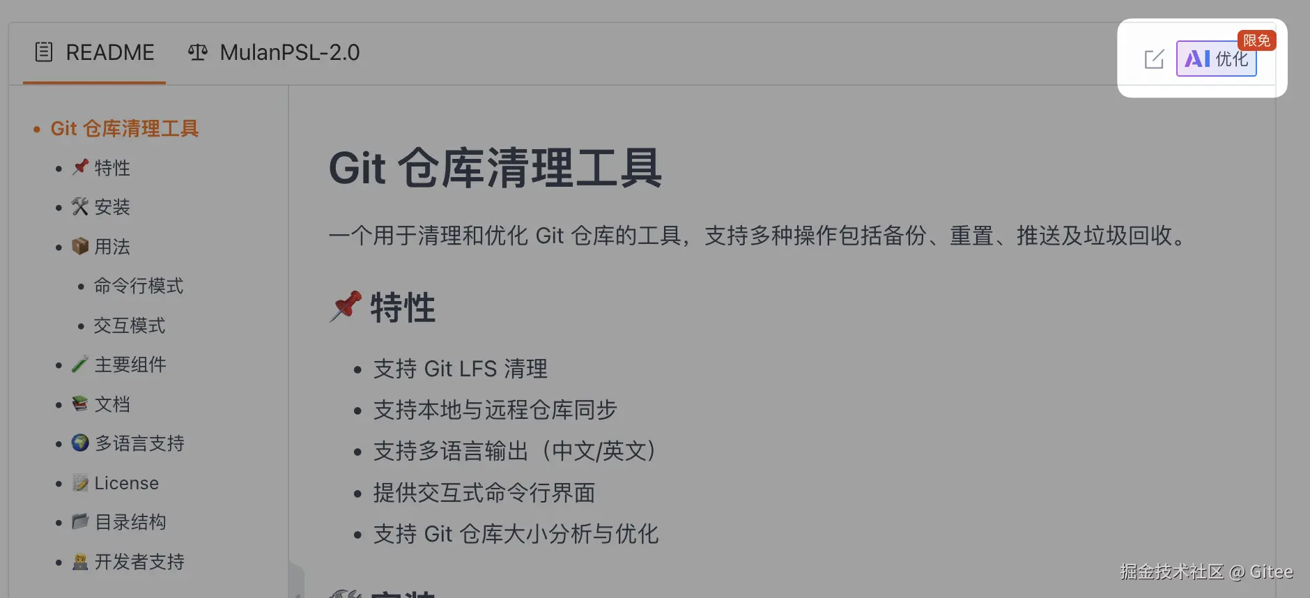 对于已有 README 文件的项目,也可使用 AI 优化功能:
