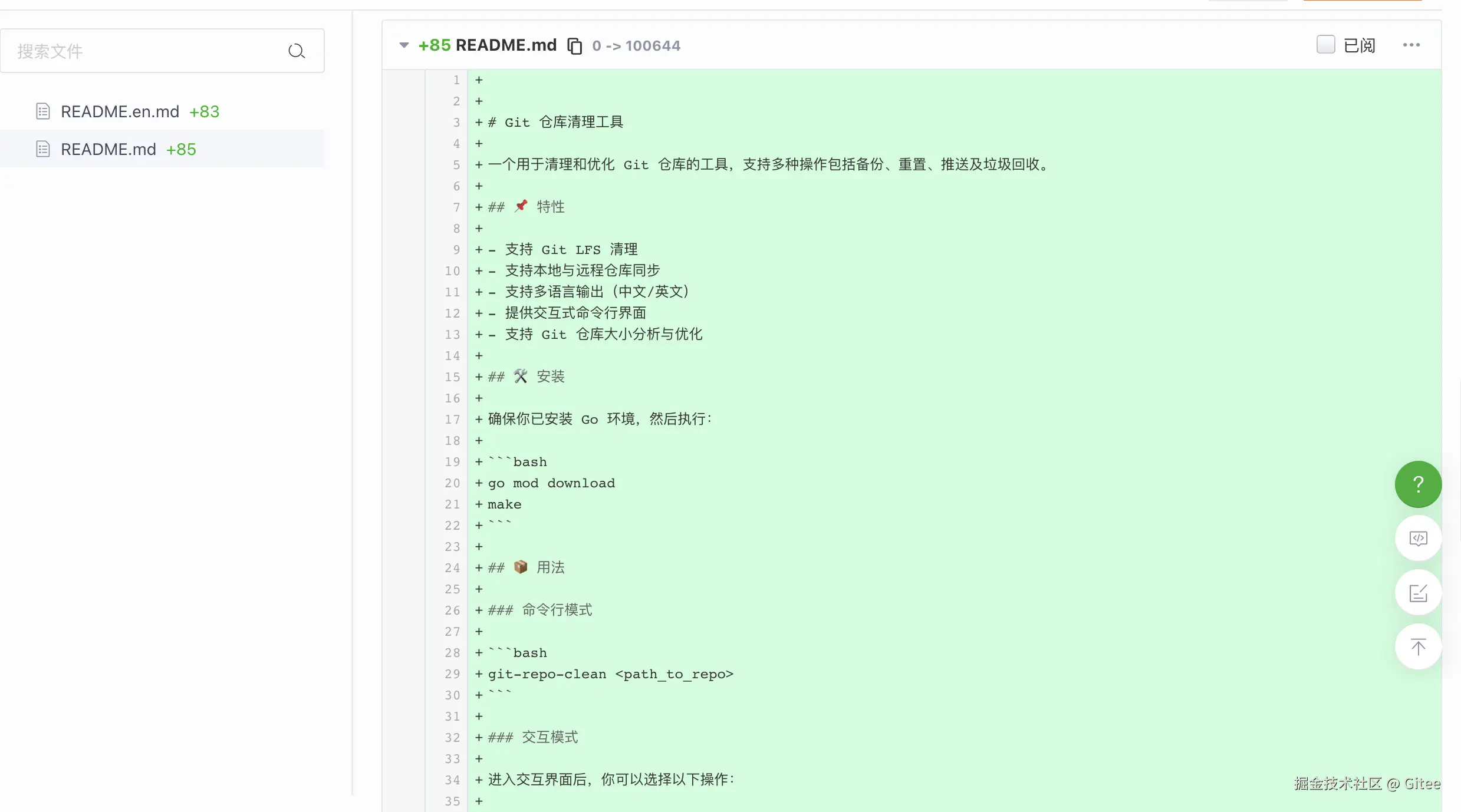 AI README 生成与优化功能,是 Gitee 在智能开发领域迈出的又一步。它回应了开发者在文档撰写上的真实痛点,将重复性工作交由 AI 自动完成,让开发者能够专注于更有价值的创新;同时通过标准化模板与智能润色机制,帮助项目迅速建立专业形象,提升传播效果;清晰、完善的文档结构,也为协作与社区建设提供了坚实基础。