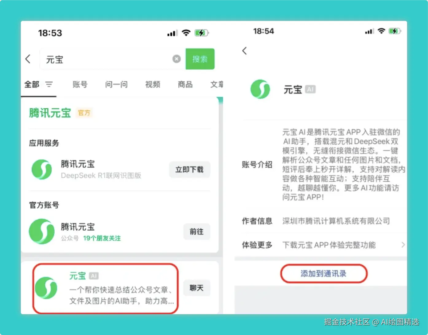直接搜索元宝添加即可。(是元宝 AI)