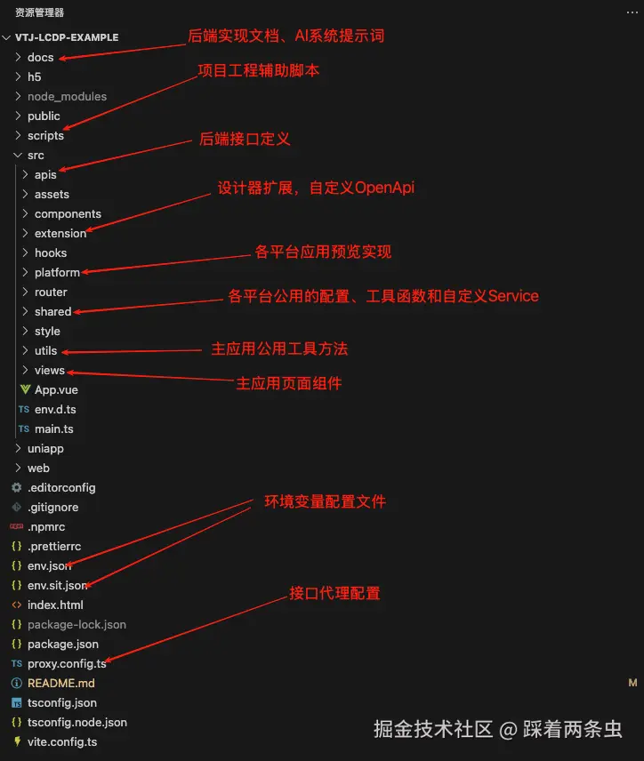 项目结构与标准工程基本一致,以下是 VTJ 特有的重要目录说明: