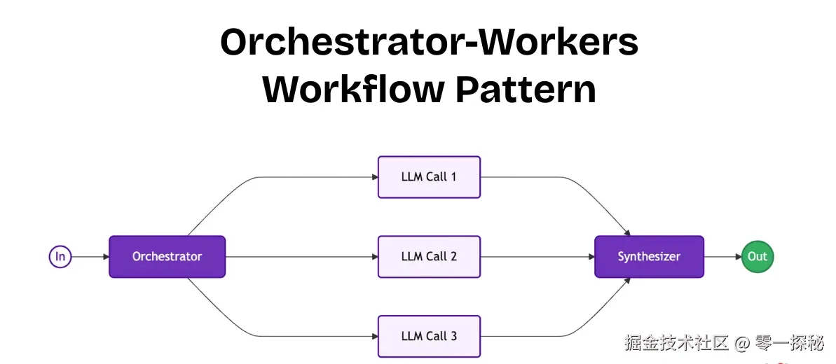 简单来说, “编排器-工作者(Orchestrator-Workers)”工作流模式 就是它能够分析一个复杂问题,将其拆解成多个定义清晰的子任务,然后将这些任务分派给专门的“工作者”代理去独立完成。