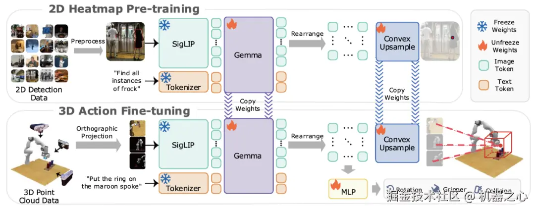 VLA 新范式:从「Next Token Prediction」到「Heatmap Prediction」,BridgeVLA 为 3D VLA 的设计提供了数据效率更高、操作效果更好的技术范式;