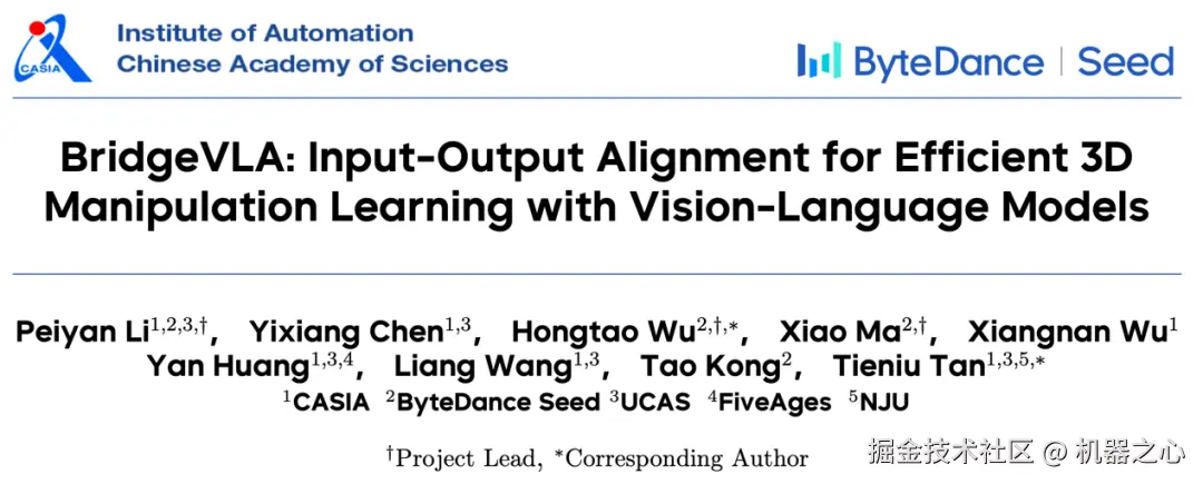 论文标题:BridgeVLA: Input-Output Alignment for Efficient 3D Manipulation Learning with Vision-Language Models