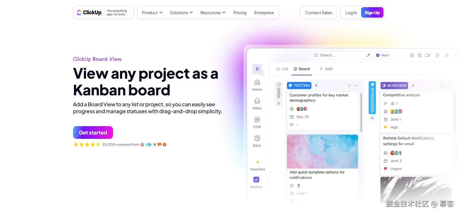 **推荐理由:**ClickUp 的AI看板更像一个“项目大脑”,能主动识别项目问题并提供解决方案,对中大型团队、产品和技术类项目尤其适用。