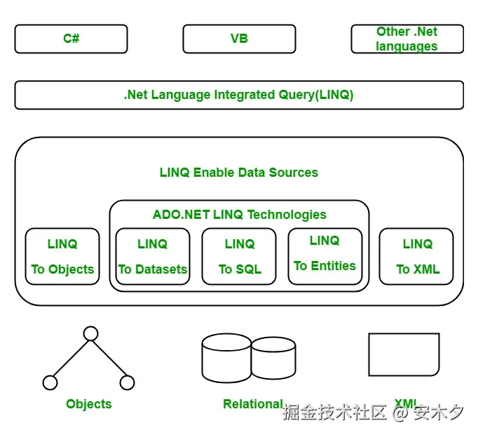 - 支持多种数据源:内存中的集合,以及各种外部数据库。