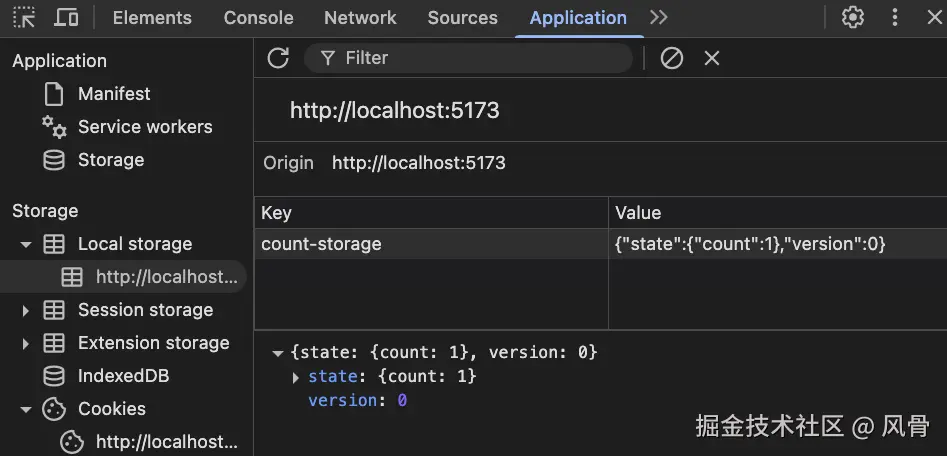 我们在 count store 中引入 persist 中间件,并采用 localStorage 存储形式定义一个 count-storage 存储名称: