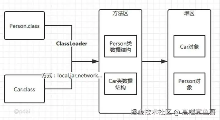 类加载指的是把类加载到 JVM 中。把二进制流存储到内存中,之后经过一番解析、处理转化成可用的 class 类