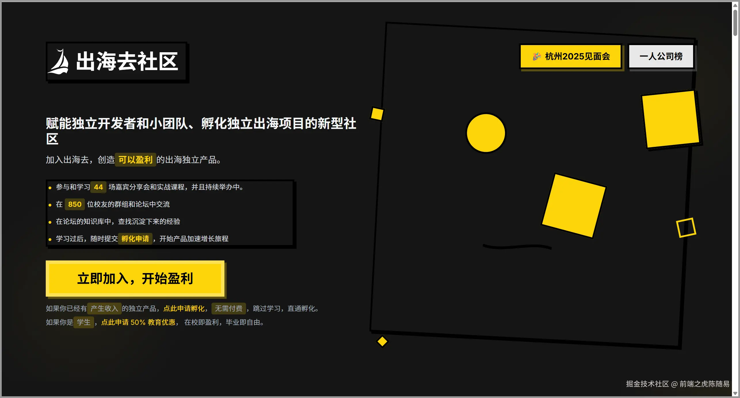 我自己是出海去社区的第一批孵化项目成员,这里给出海去社区打个广告,大家可以关注一下这个务实的帮助大家出海挣美元的有爱社区。