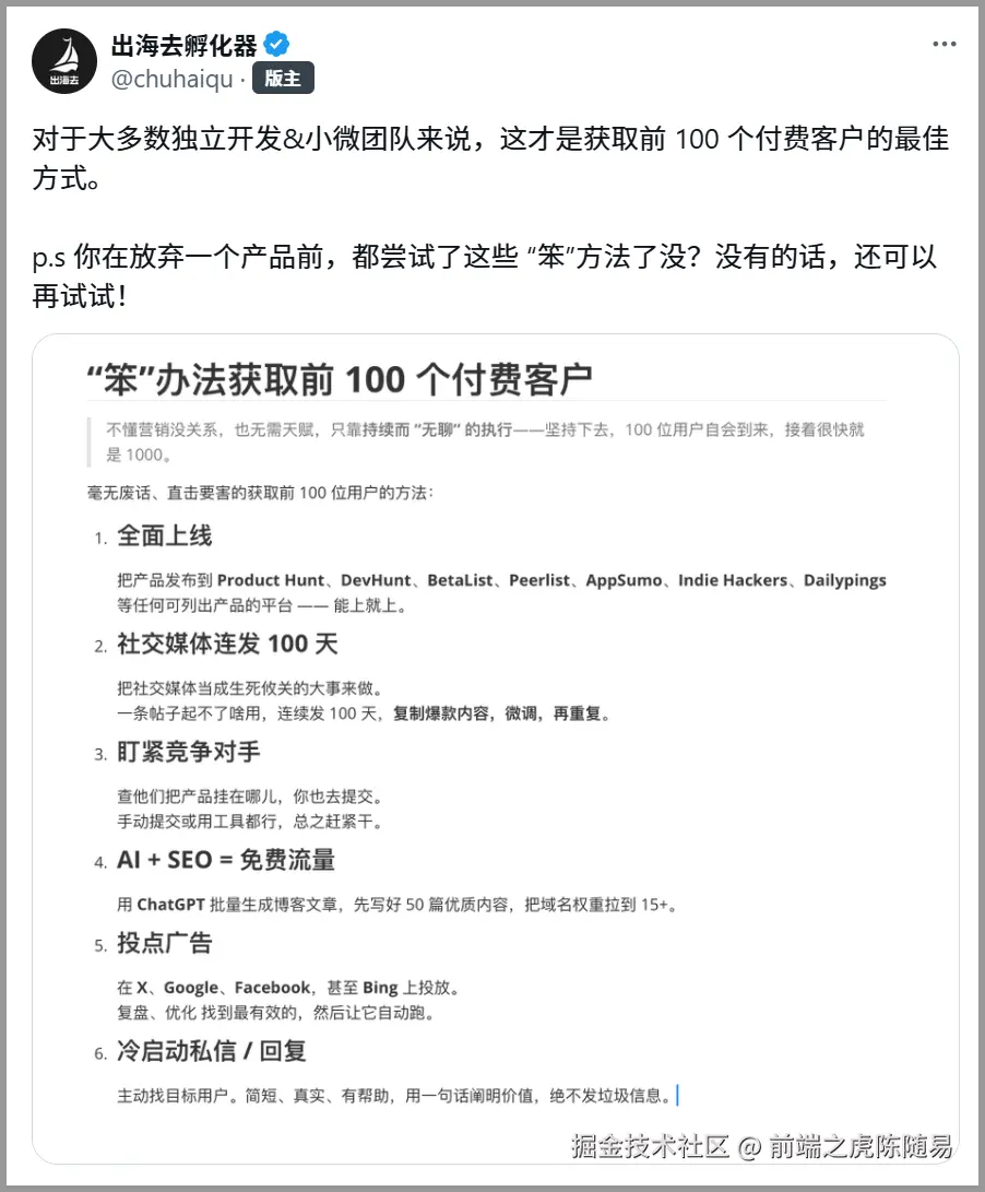 看到 出海去社区(https://chuhaiqu.club) 发的一篇帖子,引起了我的共鸣,分享到微信群后,大家都表示认可,索性顺着思路,写成一篇文章分享。