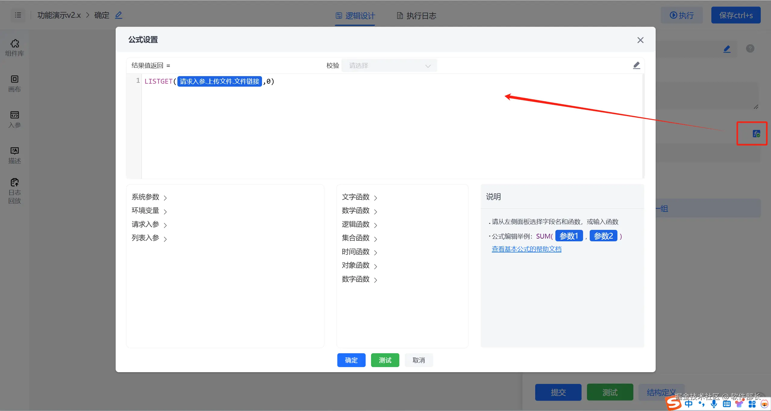 - 【固定变量】节点用集合函数“LISTGET”取链接地址,是一个数组格式。如下图所示