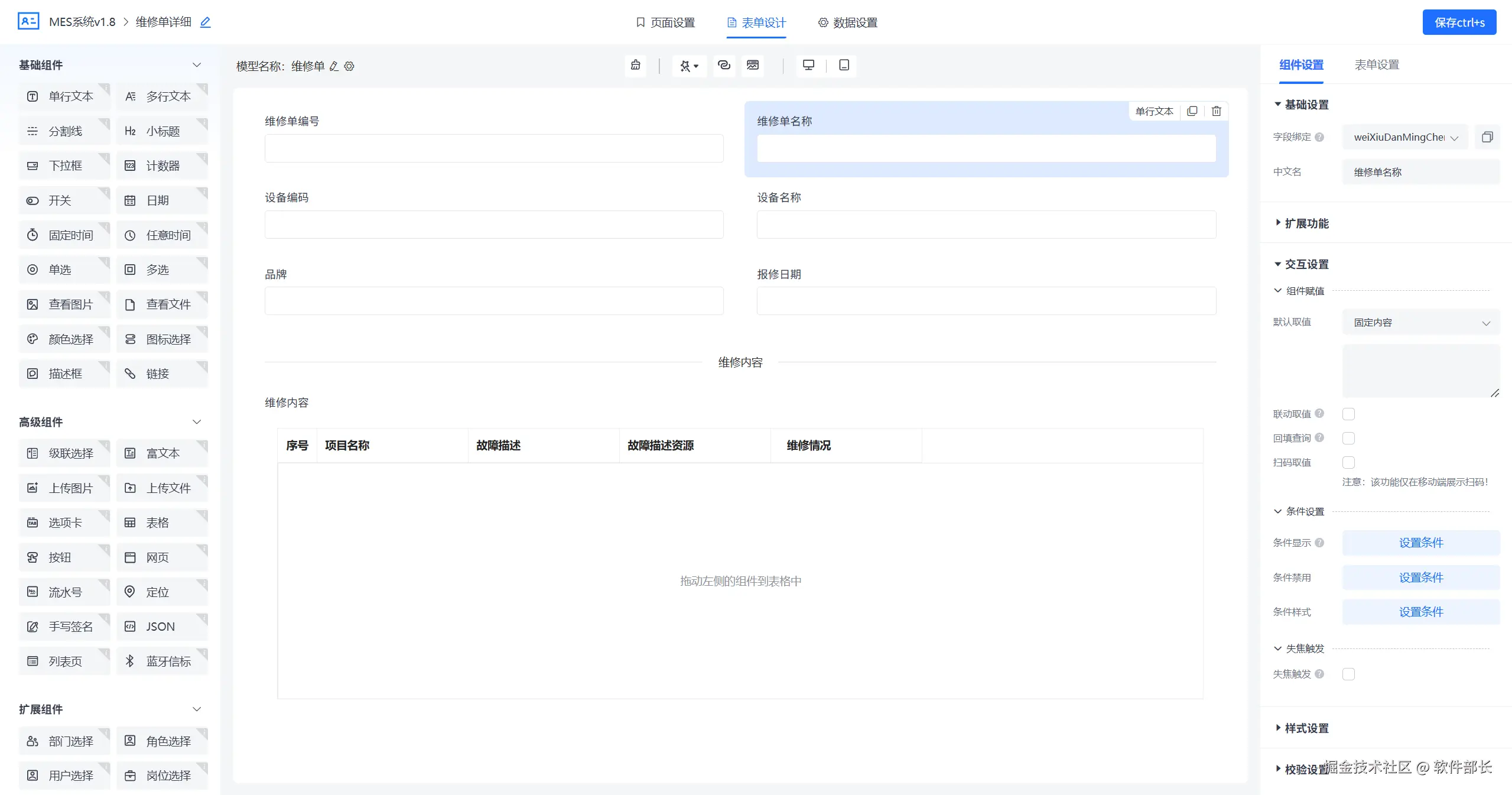 企业需要设计设备报修表单,传统做法是做个简单表单让员工填文字描述。JVS表单引擎会先做“业务建模”: