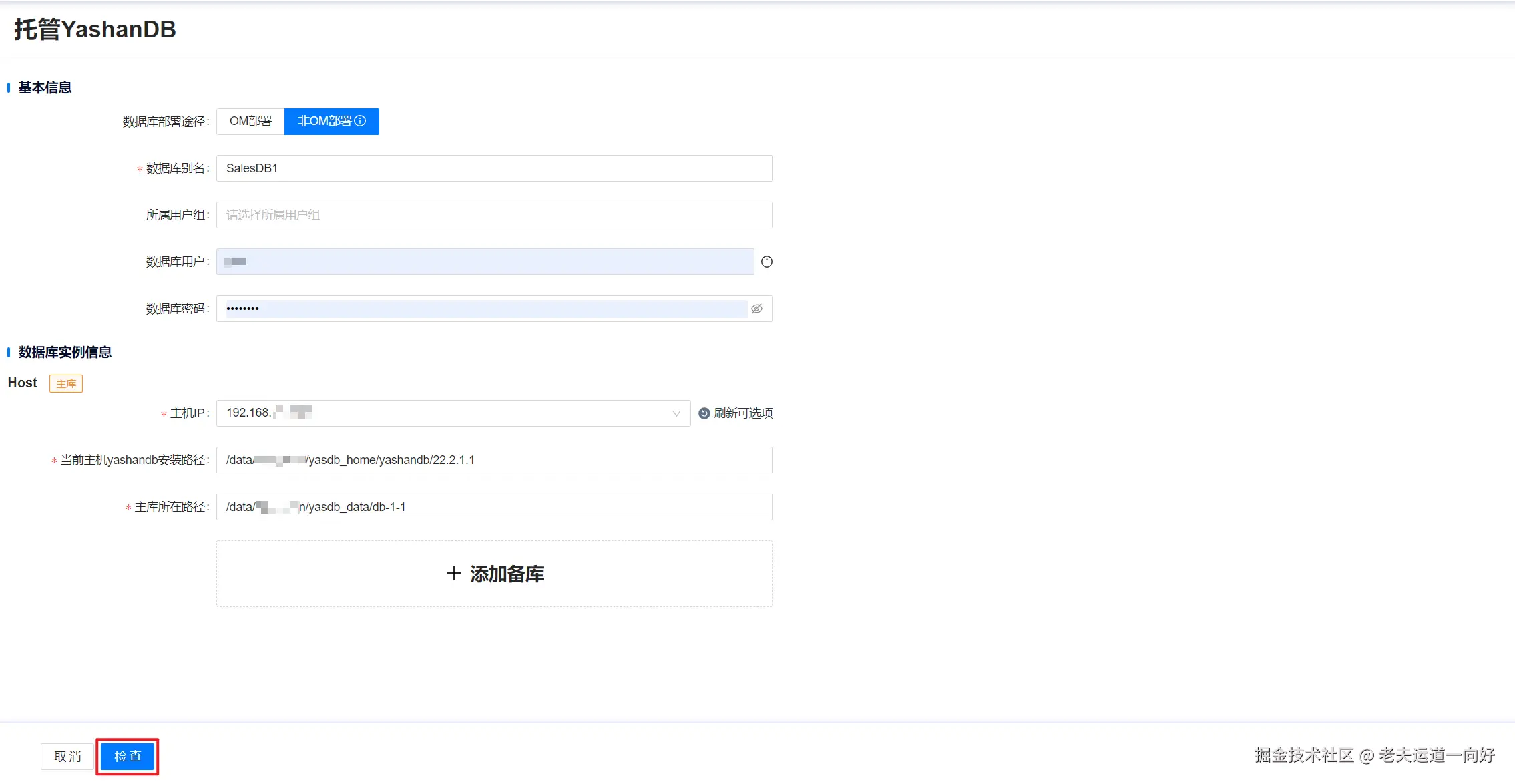 网页路径:【YashanDB列表】>【托管YashanDB】>【非OM部署】