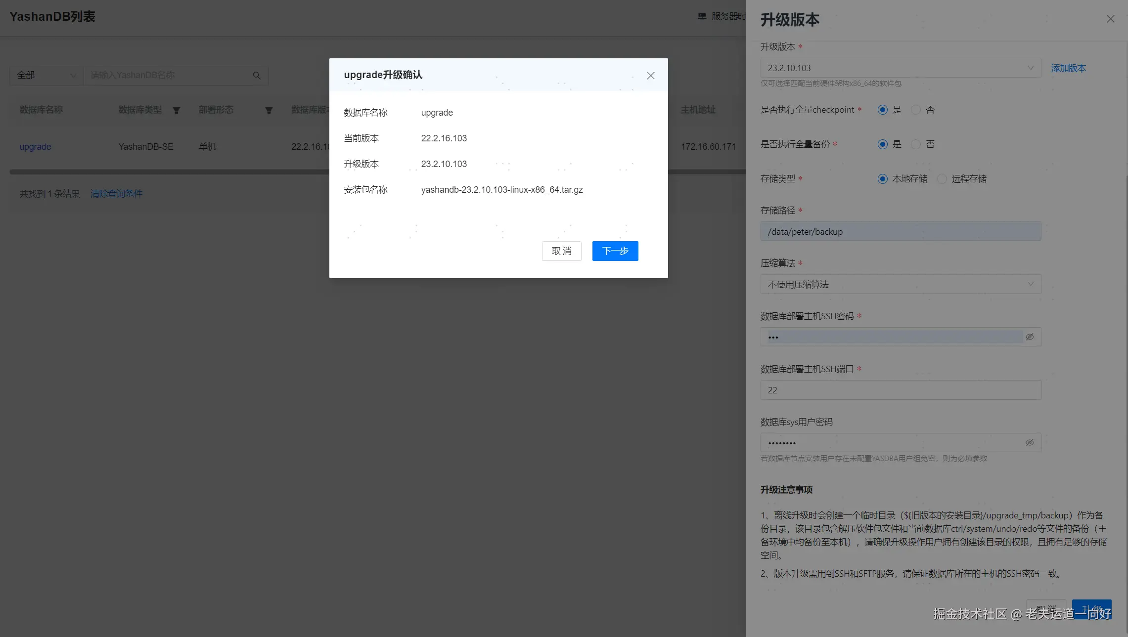 网页路径:【YashanDB列表】>【操作】>【升级】