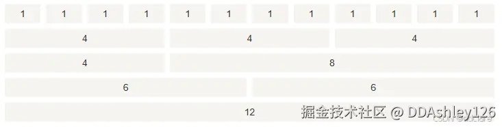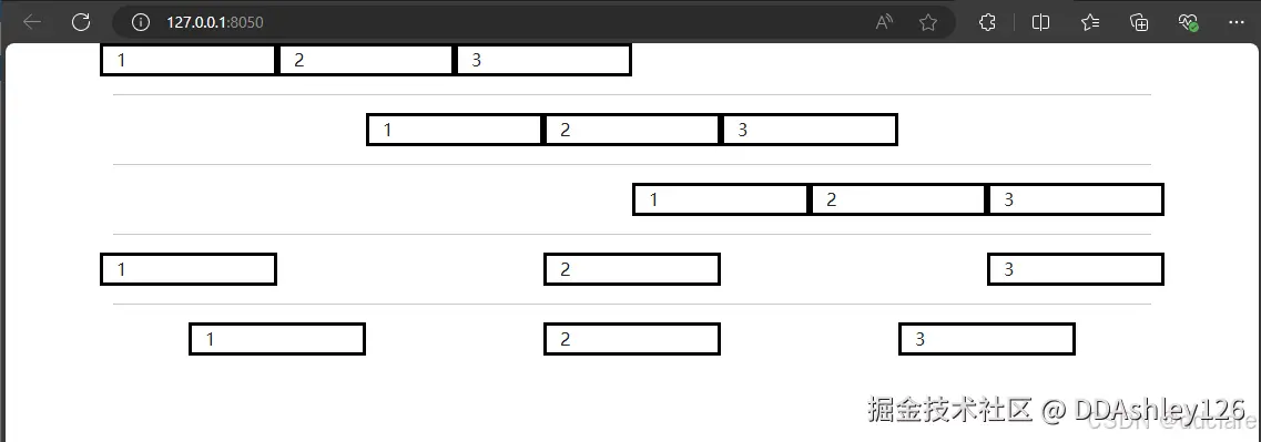 在实际排版中,很多页面布局需求中需要对于同一行的多个列元素设置对齐方式,可以通过对Row()设置参数justify来实现,可选项有'start'、'center'、'end'、'between'以及'around'五种,每种产生的效果如下面的例子: